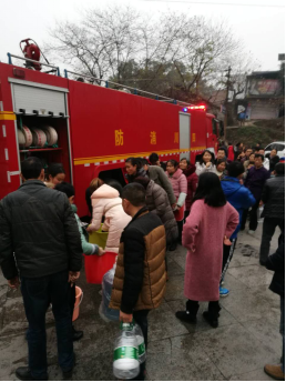 時至中午,錦繡花園小區(qū)內(nèi),一輛消防送水車前排著長隊,聞訊趕來的居民們水桶、水壺齊上陣,載重25噸的消防車放完水后,依然有焦急居民在排隊等候,營銷部工作人員向他們承諾,第二趟很快就送來。隨即,書香府第、利民醫(yī)院、三江廠社區(qū)、陽光名城、葡萄園小區(qū)、紙機廠等多個地點都活躍著送水車的身影,緩解了居民們的燃眉之急。